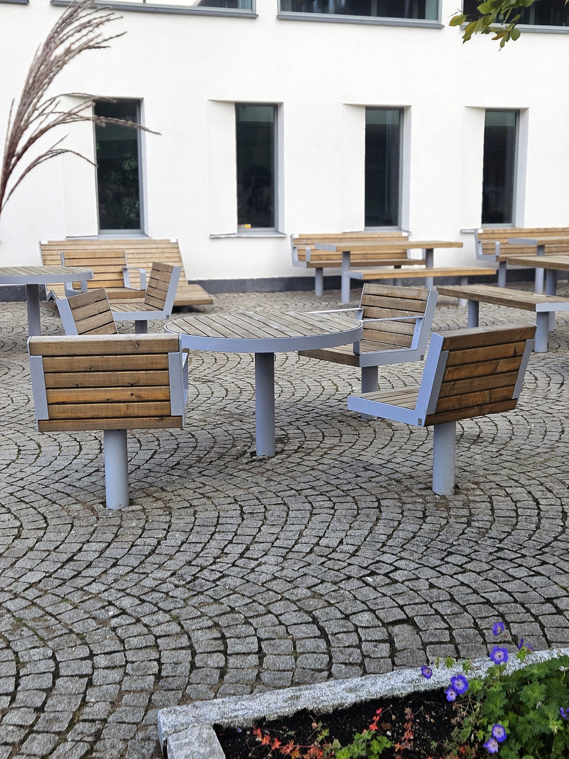 Line signalerar stabilitet och trovärdighet genom generösa dimensioner. Med en design präglad av enkelhet kan Line både smälta in, sticka ut och ta plats i stadsmiljön. Möbelserien främjar ett cirkulärt tänk med komponenter som enkelt kan bytas ut. Ger en varm och behaglig känsla genom träribbor i sits och rygg.